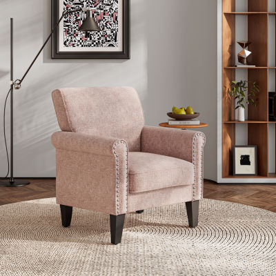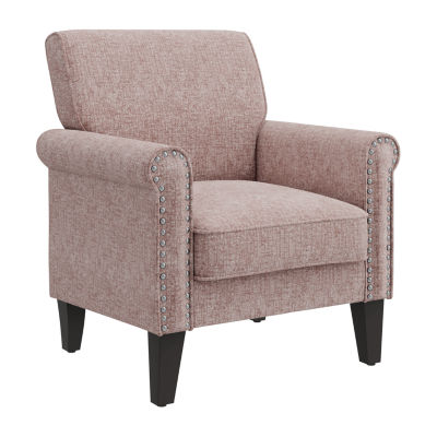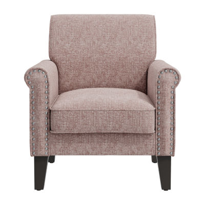 Jean Traditional Rolled Arm Accent Chair with Pewter Nailheads in Chenille