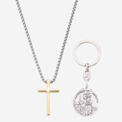 new!J.P. Army Pendant Necklace & Virgin Mary Keychain Mens Stainless Steel Cross 2-pc. Jewelry Set