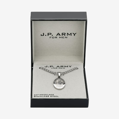 J.P. Army Men's Jewelry Saint Christopher Stainless Steel 24 Inch Cable Pendant Necklace