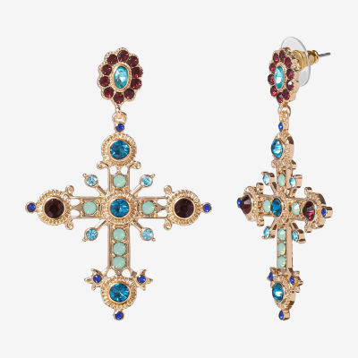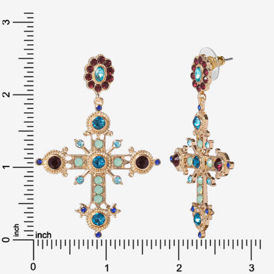 JS Jessica Simpson Gold Tone Womens Multi Color Glass Cross Drop Earrings