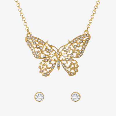 JS Jessica Simpson Gold Tone Pendant Necklace & Stud Earring Womens Crystal Butterfly 3-pc. Jewelry Set