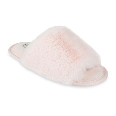 JS Jessica Simpson High Plush Bunny Fur Slid Womens Slip-On Slippers