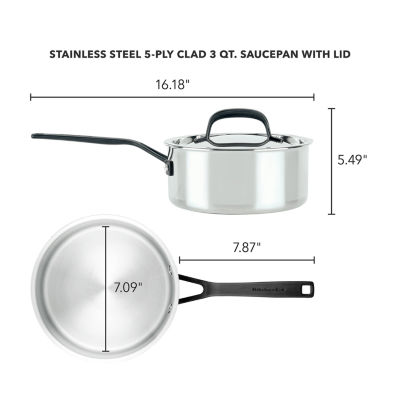 27 ReviewsAsk a Question7824441KitchenAid 5-Ply Clad Stainless Steel 3-qt. Sauce Pan with LidShop all Kitchenaid12345678Add to CartFeaturesOven SafeInduction SafeDishwasher SafeStain ResistantMetal Utensil SafeHeat Resistant HandleLifetime LimitedProduct DetailsShipping & Returns Reviews(27)Questions & AnswersAdd To Cart