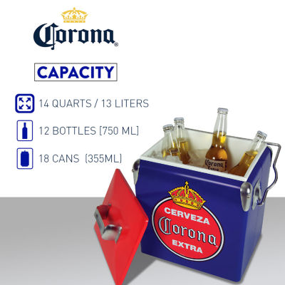 Corona Retro Ice Chest Cooler with Bottle Opener 13L (14 qt)- Blue and Red