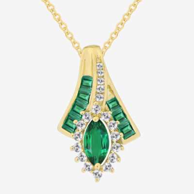 Lab-Created Gemstone 14K Gold Over Silver Marquise Pendant Necklace