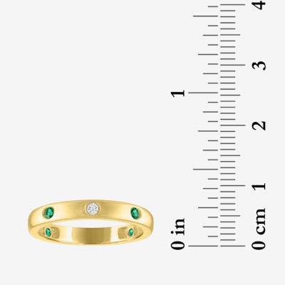 Lab Created Gemstone and 1/10 CT. T.W. Lab Grown Diamond Wedding Band in 10K Gold