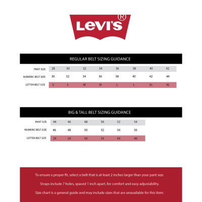7 Reviews2 Questions & 0 Answers5360578ColorsizeSize ChartLevi's® Roller Buckle Mens BeltShop all Levi12345678Add to CartFeaturesLeatherSpot CleanProduct DetailsSize ChartShipping & Returns Mens Regular Belt Size GuideShop The LookReviews(7)Questions & AnswersAdd To Cart