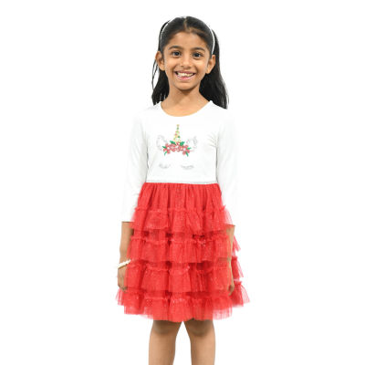Lilt Little Girls 3/4 Sleeve Fitted Tutu Dress