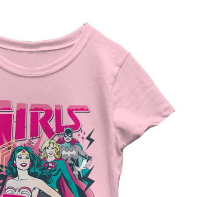Little & Big Kid Girls Crew Neck Short Sleeve Slim Fit DC Comics Justice League Graphic T-Shirt