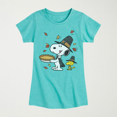 Little & Big Kid Girls Crew Neck Short Sleeve Regular Fit Snoopy Graphic T-Shirt