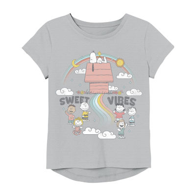 Little & Big Kid Girls Round Neck Short Sleeve Regular Fit Peanuts Snoopy Graphic T-Shirt