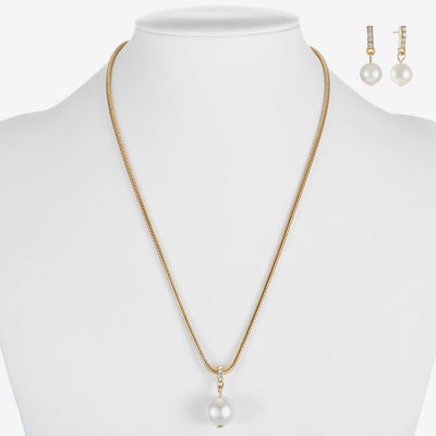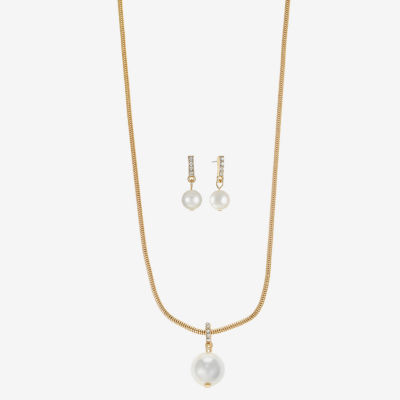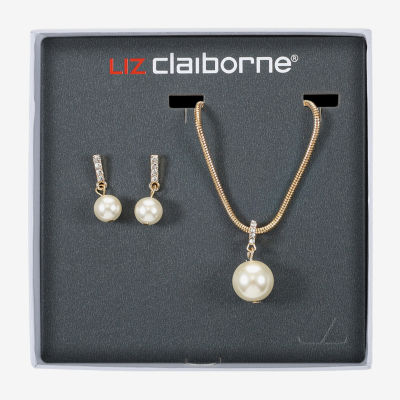 Write a ReviewAsk a Question1378204Liz Claiborne Gold Tone Pendant Necklace And Drop Earring Womens White Simulated Pearl Round Hypoallergenic 2-pc. Jewelry SetShop all Liz Claiborne12345678Add to CartProduct DetailsShipping & Returns Shop the CollectionLiz Claiborne Gold Tone Pendan...Liz Claiborne Gold Tone Collar...Liz Claiborne Gold Tone Womens...Shop The LookReviewsQuestions & AnswersAdd To Cart
