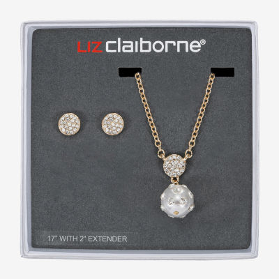 Write a ReviewAsk a Question1371422Liz Claiborne Gold Tone Pendant Necklace & Stud Earring Womens Simulated Pearl 2-pc. Jewelry SetShop all Liz Claiborne12345678Add to CartProduct DetailsShipping & Returns Shop the CollectionLiz Claiborne Gold Tone Pendan...Liz Claiborne Gold Tone Fronta...Liz Claiborne Gold Tone Charm ...Liz Claiborne Gold Tone Toggle...Liz Claiborne Gold Tone Womens...Liz Claiborne Gold Tone Charm ...Liz Claiborne Gold Tone Womens...Liz Claiborne Gold Tone Womens...Shop The LookReviewsQuestions & AnswersAdd To Cart