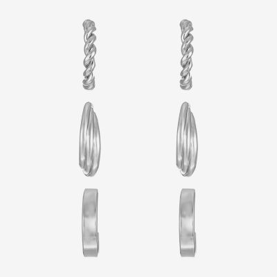 Liz Claiborne Hoop Twisted Womens Hypoallergenic 3 Pair Earring Set