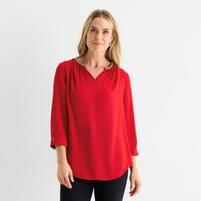 Liz Claiborne Shine Womens Split Crew Neck 3/4 Sleeve Blouse