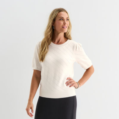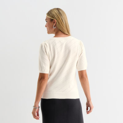 Liz Claiborne Womens Crew Neck Short Sleeve Pullover Sweater