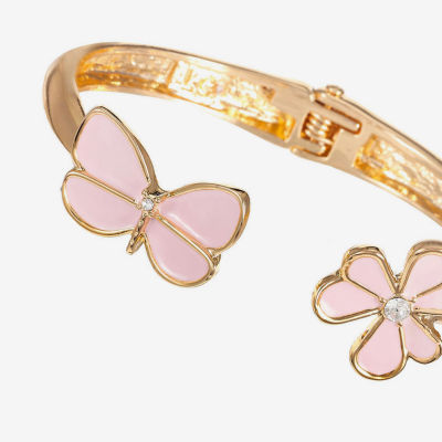new!Liz Claiborne Womens Glass Butterfly Flower Bangle Bracelet