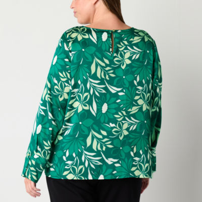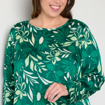 Liz Claiborne Womens Plus Round Neck Long Sleeve Satin Blouse
