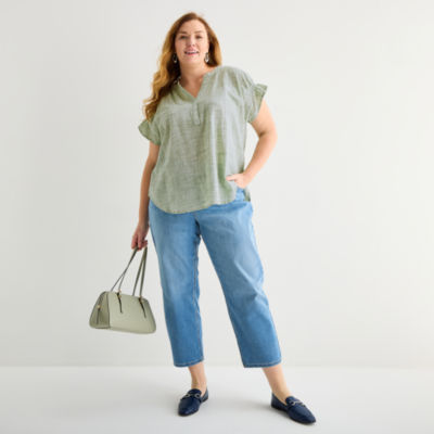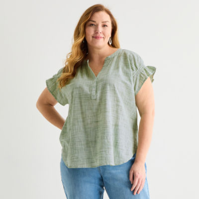 new!Liz Claiborne Womens Plus Split Crew Neck Short Sleeve Blouse