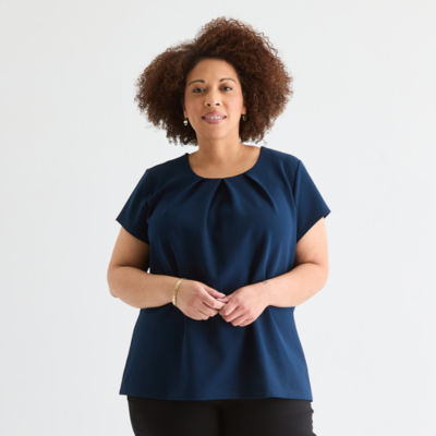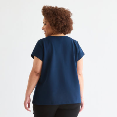 Liz Claiborne Womens Plus U Neck Short Sleeve Blouse