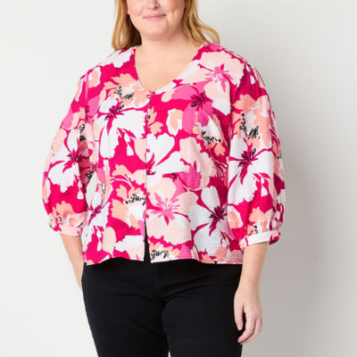 Liz Claiborne Womens Plus V Neck 3/4 Sleeve Peplum Top