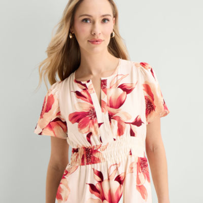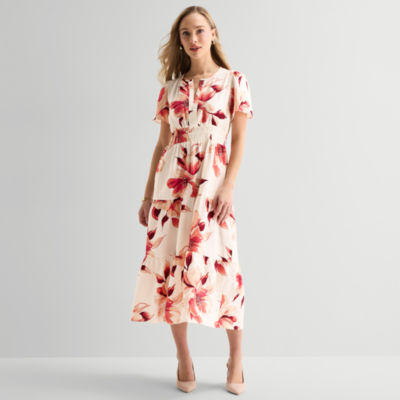new!Liz Claiborne Womens Short Sleeve Floral Midi Peasant Dress