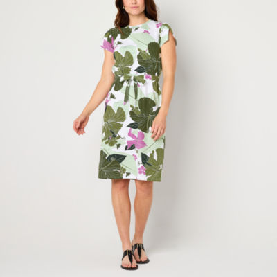 Liz Claiborne Womens Short Sleeve Midi Floral A-Line Dress