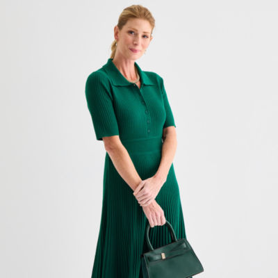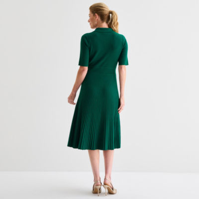 Liz Claiborne Womens Short Sleeve Midi Sweater Dress