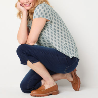 Liz Claiborne Womens Split Crew Neck Short Sleeve Blouse