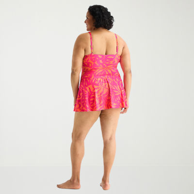 new!Liz Claiborne Womens Tropical Leaf Plus Swim Dress