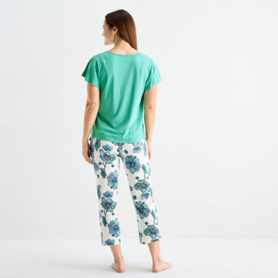 Liz Claiborne Womens V-Neck Short Sleeve 2-pc. Pajama Sets