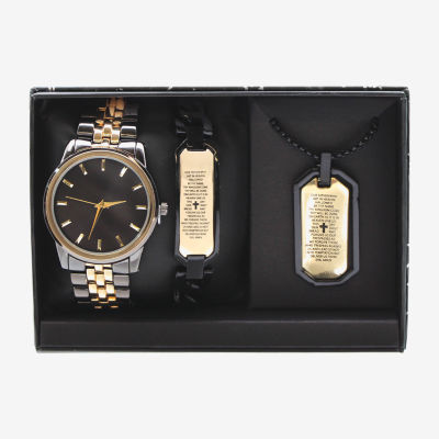 Lords Prayer Mens Two Tone 3-pc. Watch Boxed Set Mac7143jc