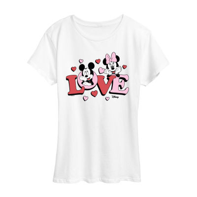 new!Love Mickey Minnie Womens Crew Neck Short Sleeve Classic Fit Mickey and Friends Graphic T-Shirt