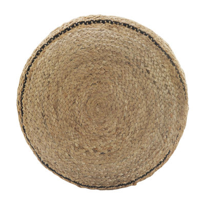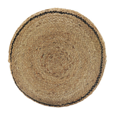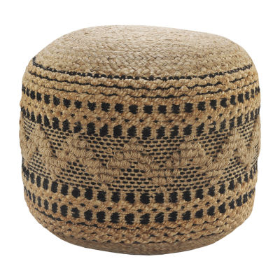 LR Home John 14" Handmade Jute Blend Pouf in Tan/Black