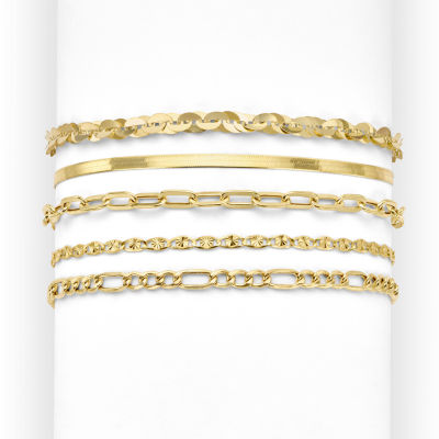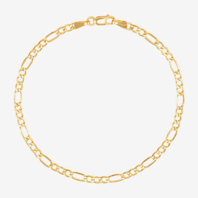 Made in Italy Womens 10K Gold 7.5 Inch Hollow Figaro Chain Bracelet