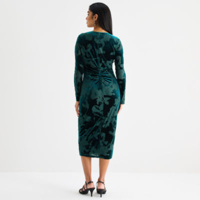 Marc New York Velvet Womens Long Sleeve Floral Sheath Dress