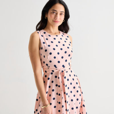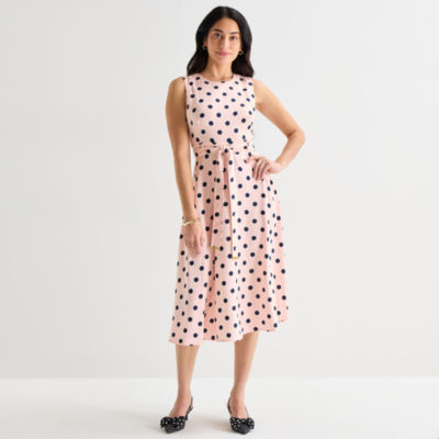new!Marc New York Womens Sleeveless Polka Dot Midi Fit + Flare Dress