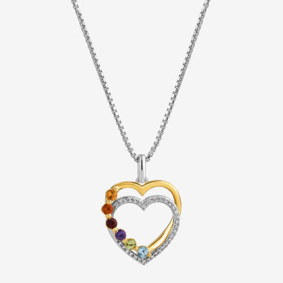 Marvel Fine Jewelry Womens 1/10 CT. T.W. Genuine Multi Color 14K Gold Over Silver Sterling Silver Heart 18 Inch Pendant Necklace