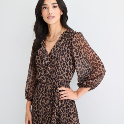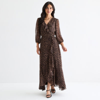 Melonie T Womens 3/4 Sleeve Animal Maxi Dress