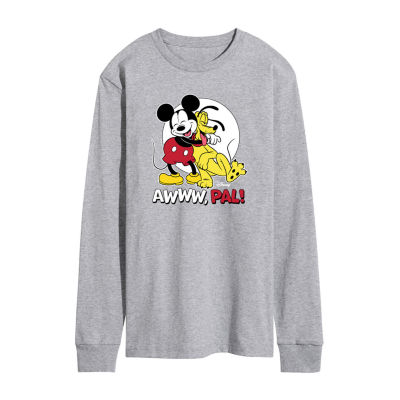 Mens Crew Neck Long Sleeve Mickey and Friends Valentine's Day T-Shirt