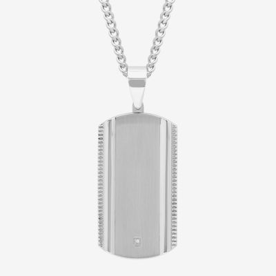 Mens Diamond Accent Natural White Diamond Stainless Steel Dog Tag 24 Inch Pendant Necklace