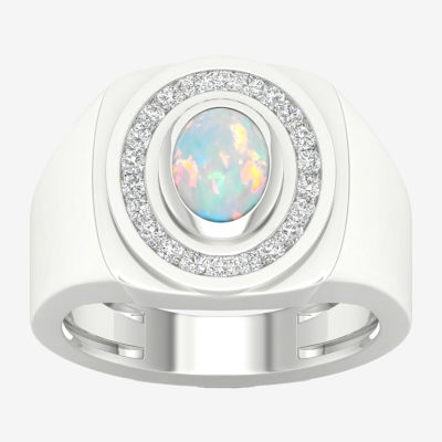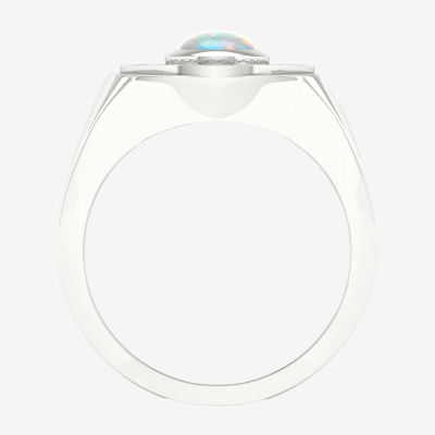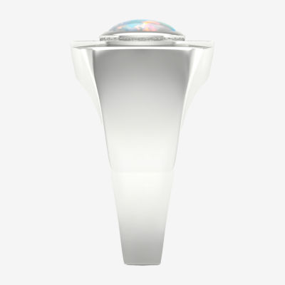 Mens Lab Created White Opal Sterling Silver Fashion Ring
