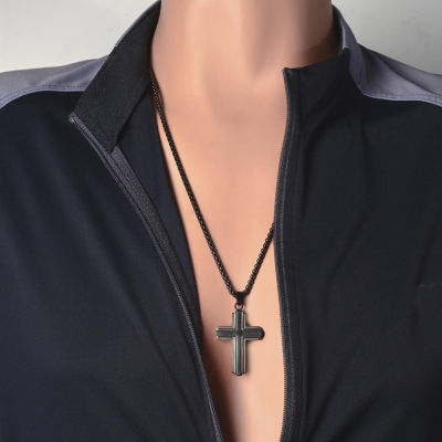 Mens Stainless Steel Cross 24 Inch Pendant Necklace