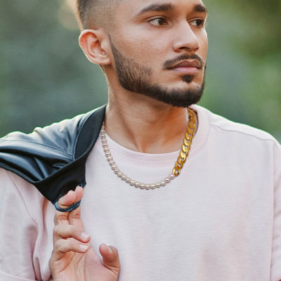 Mens White 18K Gold Over Silver 20 Inch Strand Necklace