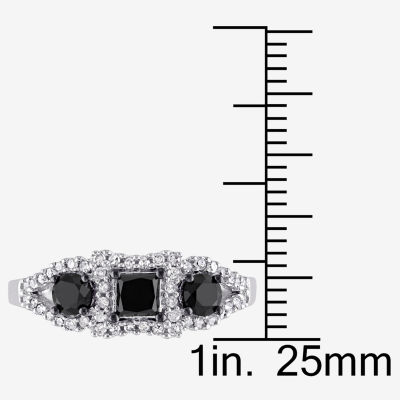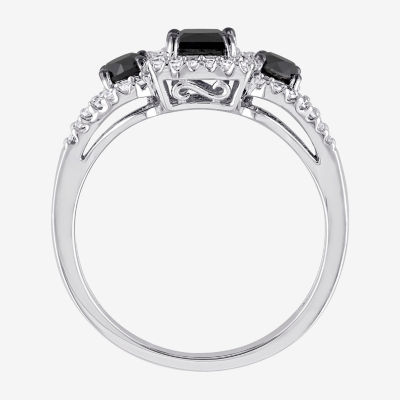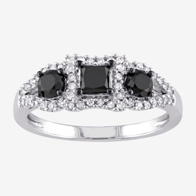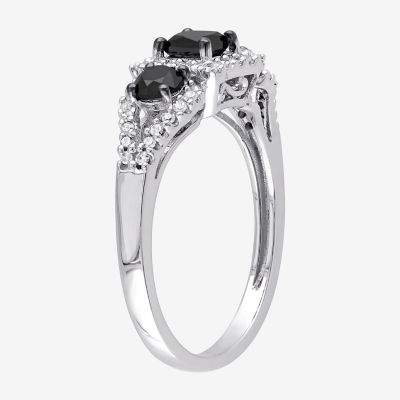 Midnight Black Womens 1 CT. T.W. Natural Black Diamond 10K Gold 3-Stone Halo Engagement Ring