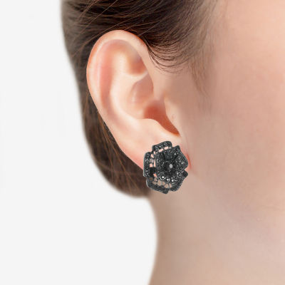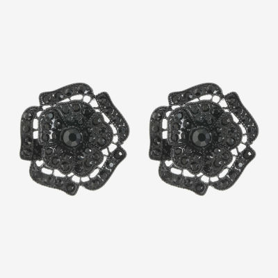Mixit Black Black 30mm Flower Stud Earrings