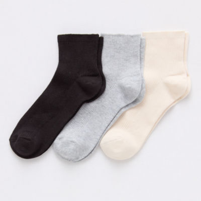 Mixit Rib Womens 3 Pair Quarter Ankle Socks