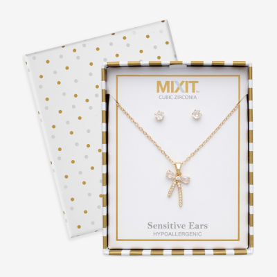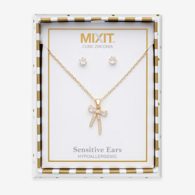 Mixit Womens Cubic Zirconia Bow Hypoallergenic 3-pc. Jewelry Set