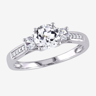 Modern Bride Gemstone Womens Diamond Accent Lab Created White Sapphire 10K White Gold Round 3-Stone Engagement Ring