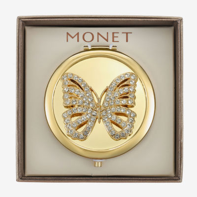 Monet Jewelry Clear Gold Tone Compact Mirror
